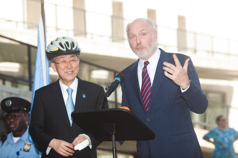 bikes were promised for the U.N. neighbourhood. By then, our distinguished Secretary General Ban Ki-moon had donned the helmet handed him by Ms.